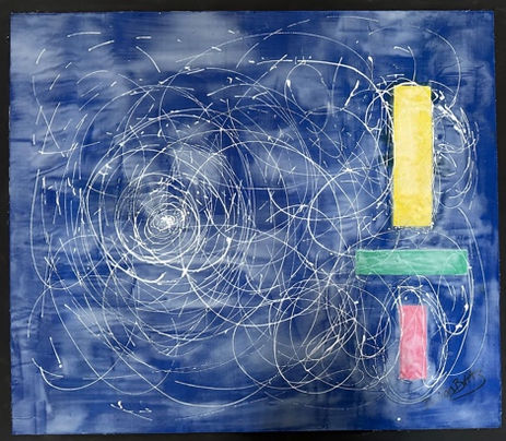 Restless lie - while golden moments fly, Collage mounted on board, gauche + acrylic paint - 80x60